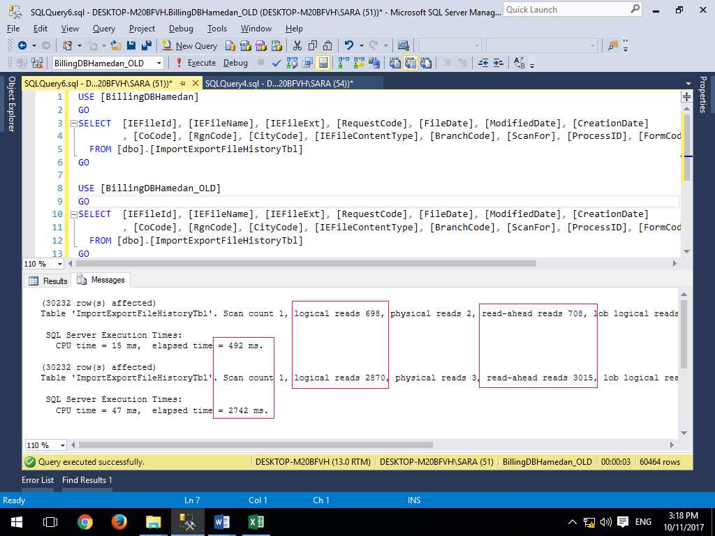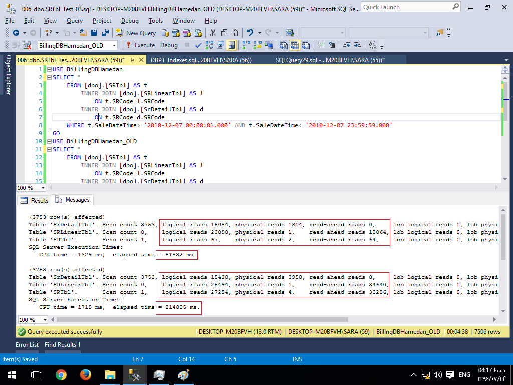 | SrDetailTbl Logical Reads | 15,438 | 15,084 |