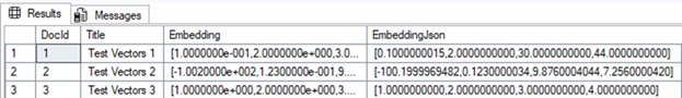 SELECT DocId, Title, CAST(Embedding AS NVARCHAR(MAX)) AS EmbeddingJson
